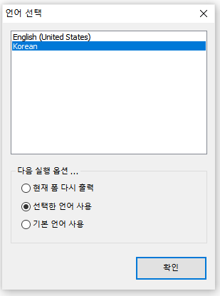 언어를 선택하고 확인 버튼을 누르면 프로그램이 실행된다.
